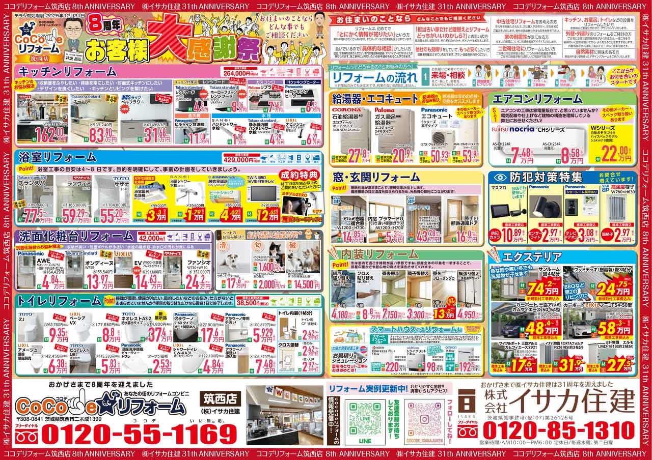 【イベント】新春リフォームフェア開催1/25(土)・26(日)【筑西店(茨城)】 開催日時:1/25(土)・26(日) 10:00~16:00 場所:ココデリフォーム筑西店 2025謹賀新年 新春リフォームフェアを開催!! 【...