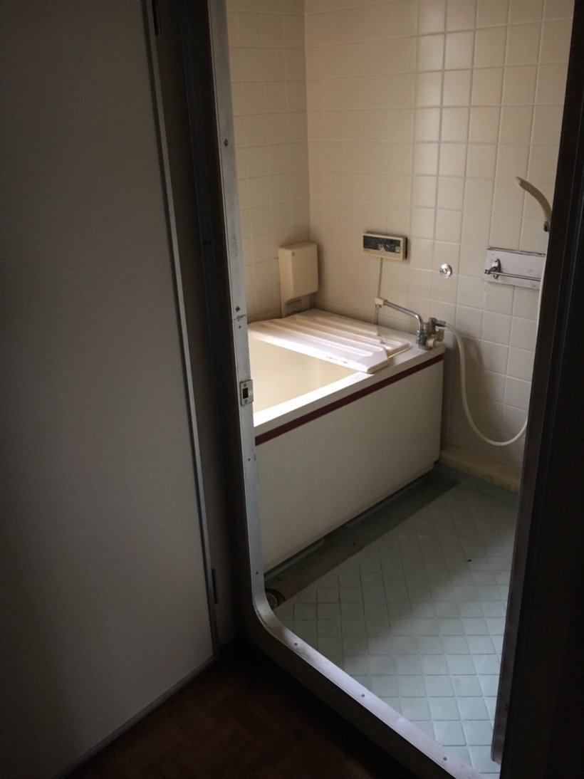 既存の浴室はホールインワンと呼ばれるタイプのもので給湯器が浴室の壁に貫通して納まっているものです。