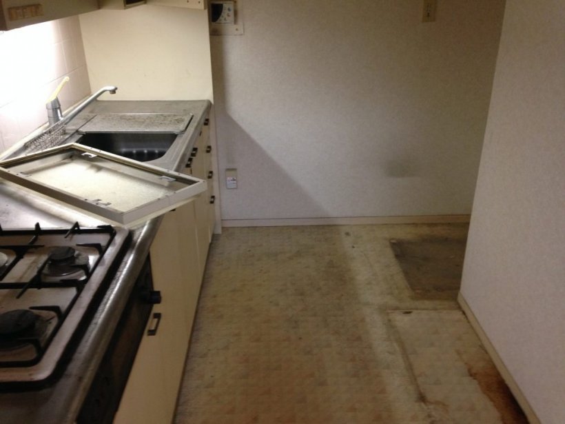 こちらは築30年ほどのマンションで既存のキッチンはステンレスの天板で 表面に細かいキズが目立ち、長年の油汚れが染みついてしまっていました。
