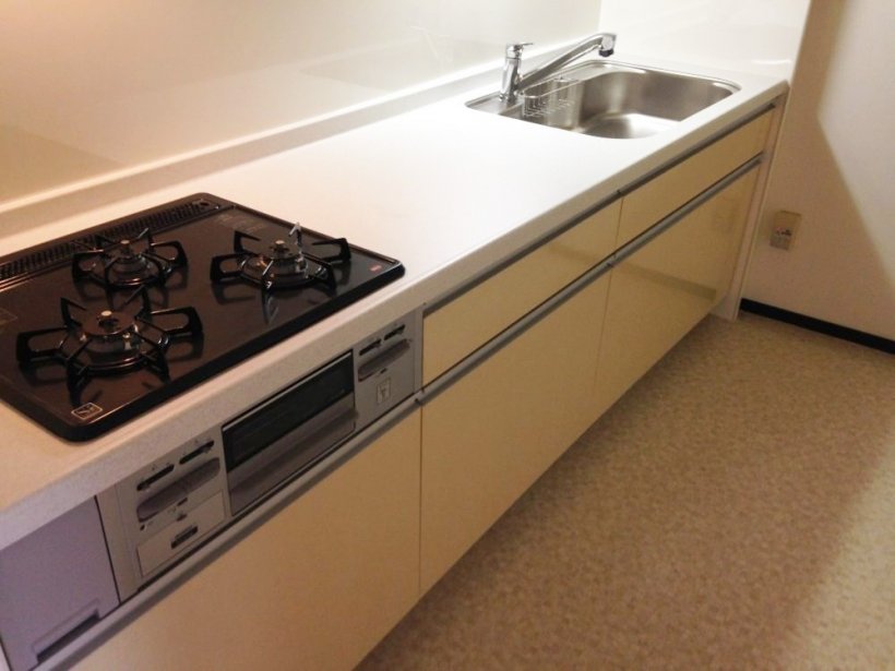 新しいキッチンは天板を人工大理石にすることで細かいキズが目立たなくなり 汚れも楽に拭き取れるのでお手入れがしやすいものになりました。
