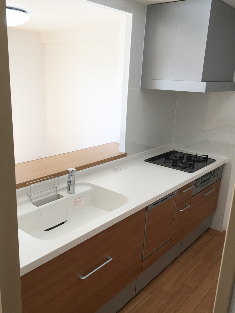 キッチンの吊戸棚を無くし、開放感のあるキッチンにしました。